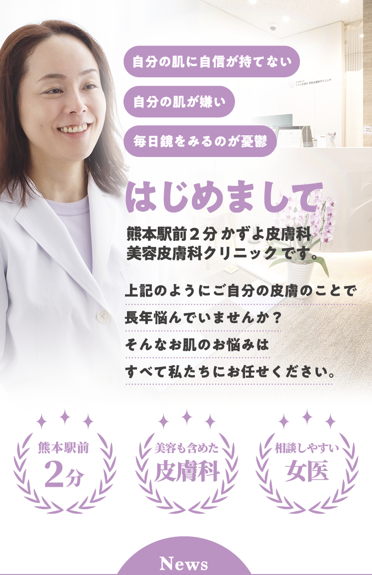 熊本駅前2分かずよ皮膚科美容皮膚クリニック院長の北 和代です。