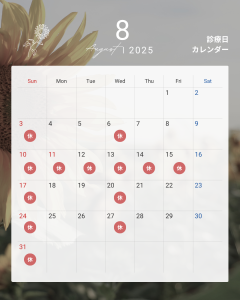 8月の夏季休診日のお知らせです。