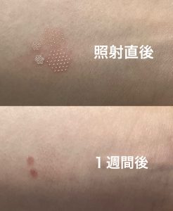 1週間でだいぶ跡や赤みが目立たなくなってきていますよね✨触った感じは少しざらつきがあるかなという感じでした❕