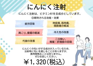 💉にんにく注射 ¥1,320(税込)