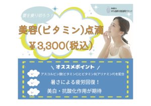 当院では7月より新しく『美容(ビタミン)点滴』『にんにく注射』を加えました✨