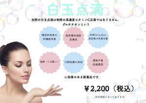 既存のメニューの白玉点滴もおこなっております。