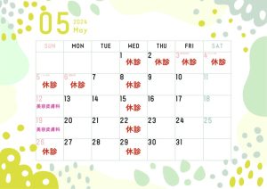 5月の連休に伴い、診療日・休診日に変更がございます。