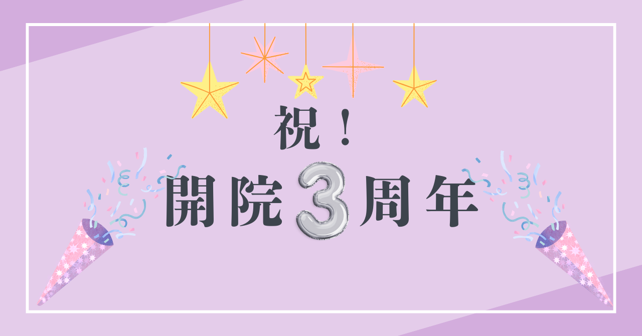 こんにちは。当院ホームぺージをご覧いただきありがとうございます☺️ 当院は2022年に開院し、4/1に開院3周年を迎えました!🌸 ここまで継続できま...