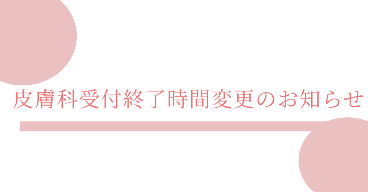 ⚠️皮膚科受付時間変更のお知らせ⚠️